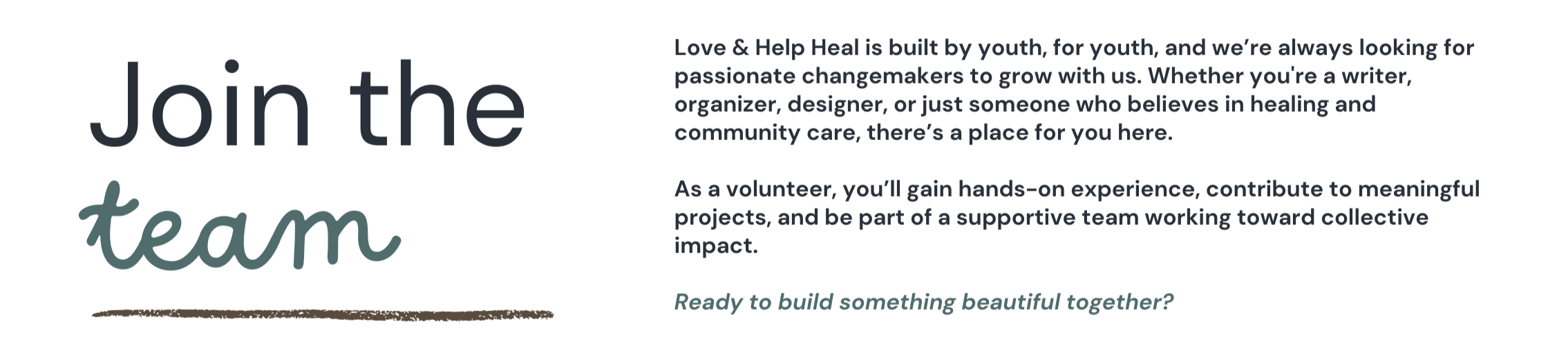 Thank you for your interest in joining Love & Help Heal, an award-winning, youth-led nonprofit creating change through creative, community, and educational initiatives. Our work aligns with the United Nations Sustainable Development Goals (SDGs):